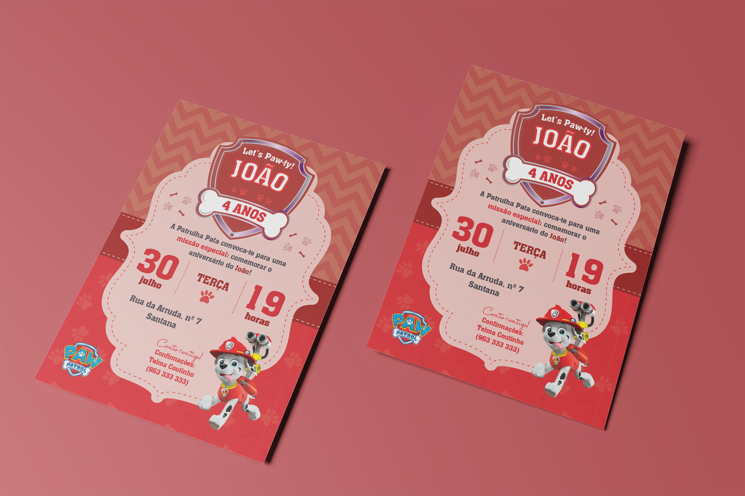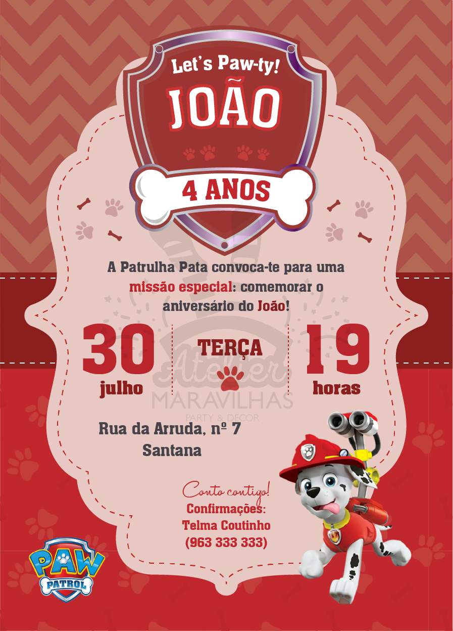 Convite digital – Pronto a imprimir – Patrulha Pata