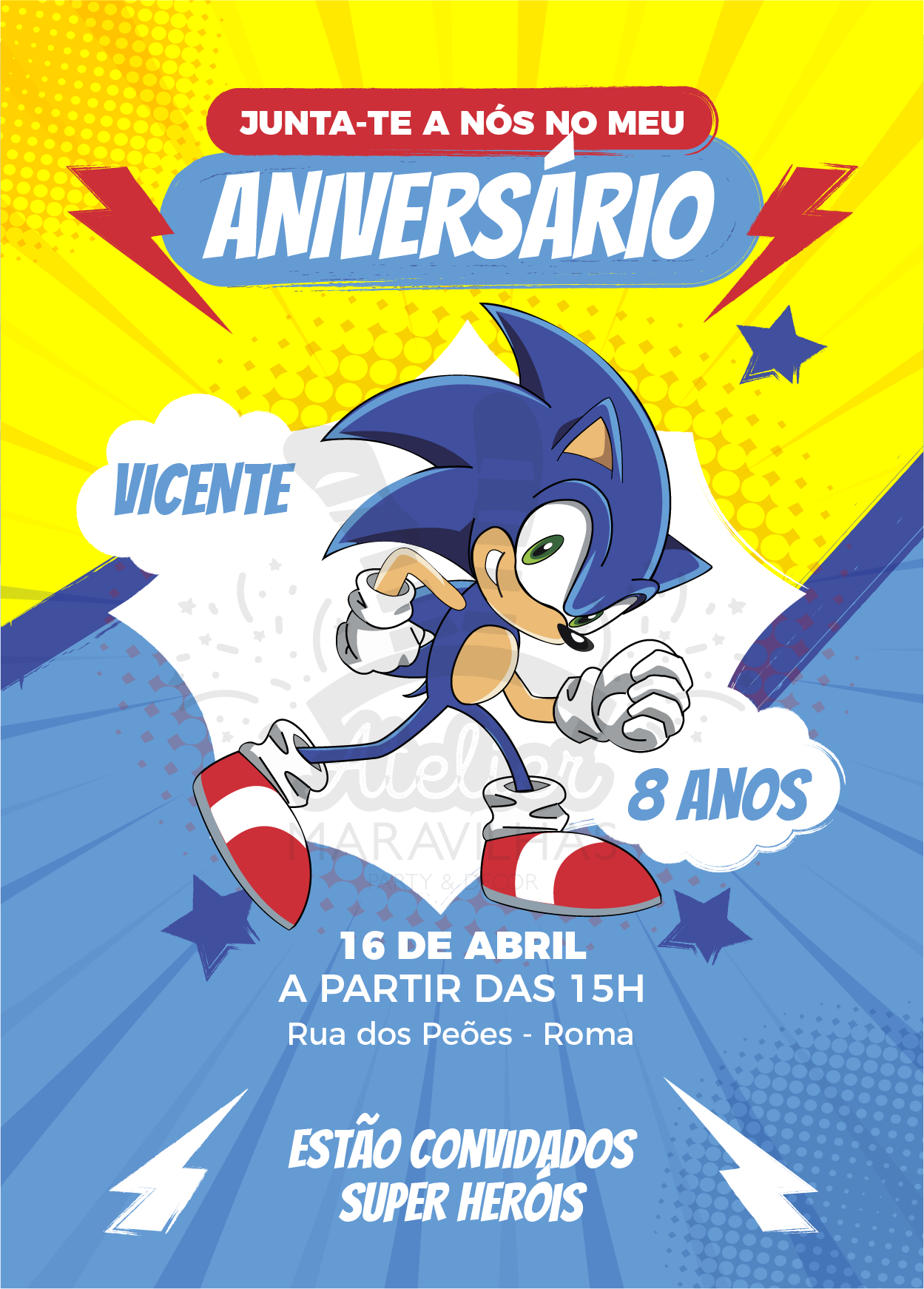 Convite digital – Pronto a imprimir – Sonic