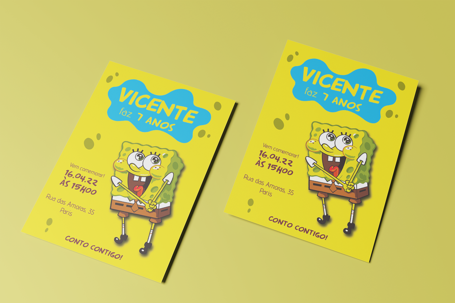 Convite digital – Pronto a imprimir – Sponge Bob