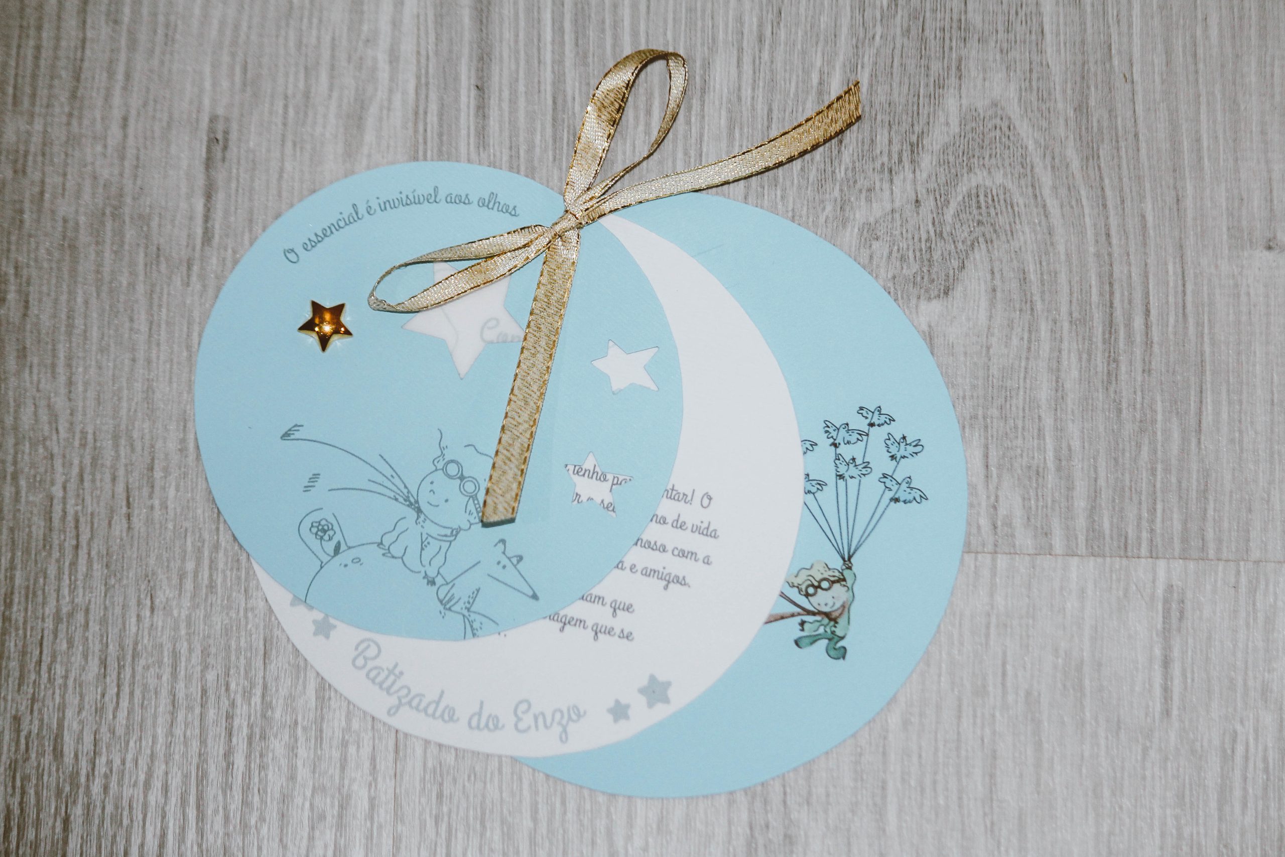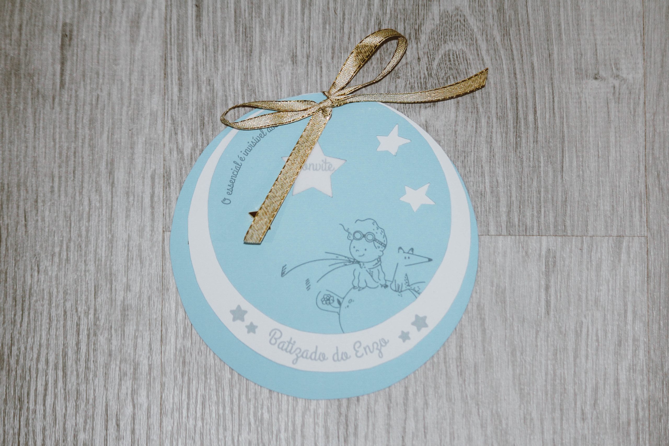 Convite Principezinho em cartolina com impressão a cinzento (preencha o formulário abaixo com os dados para o convite)