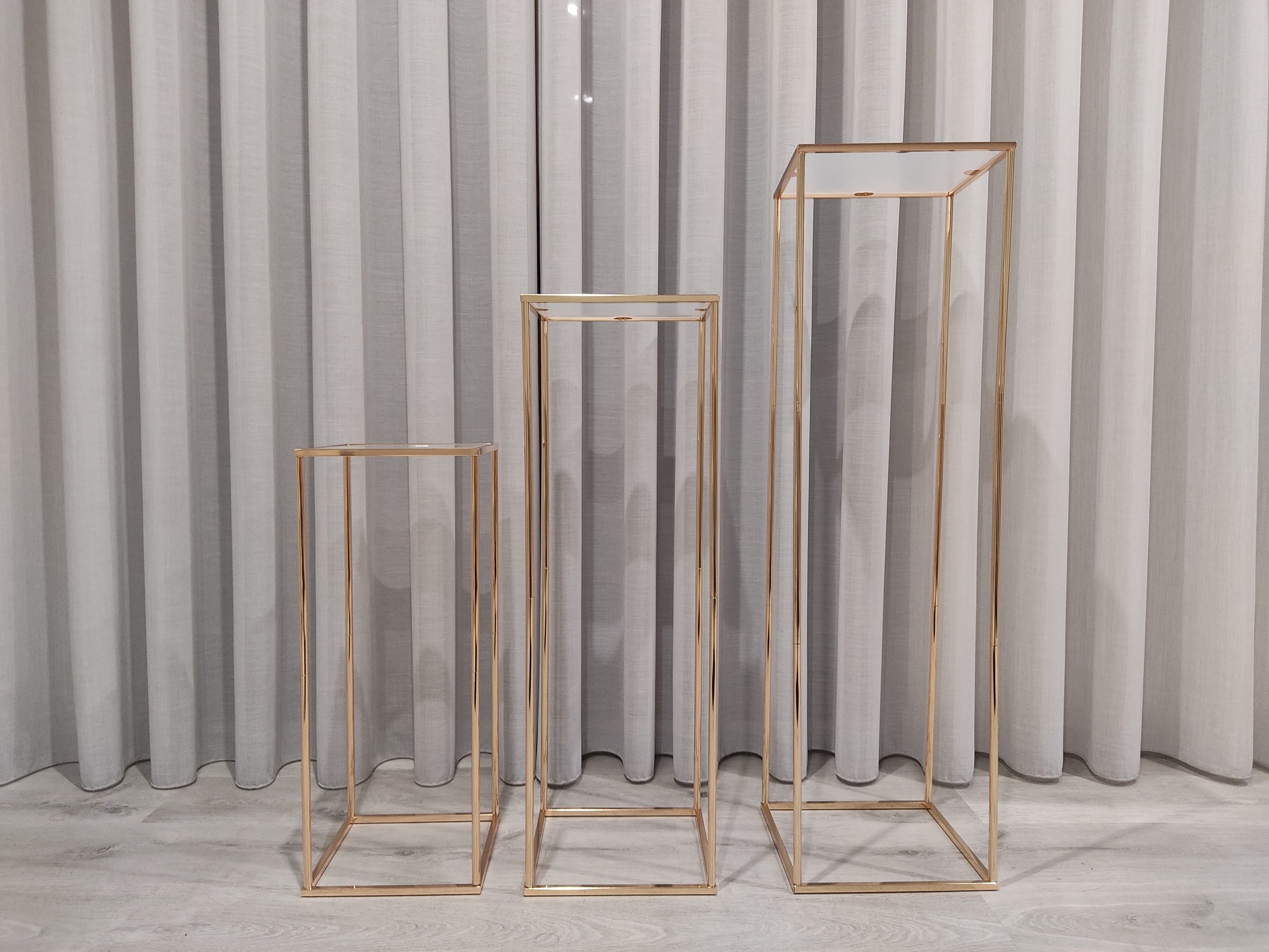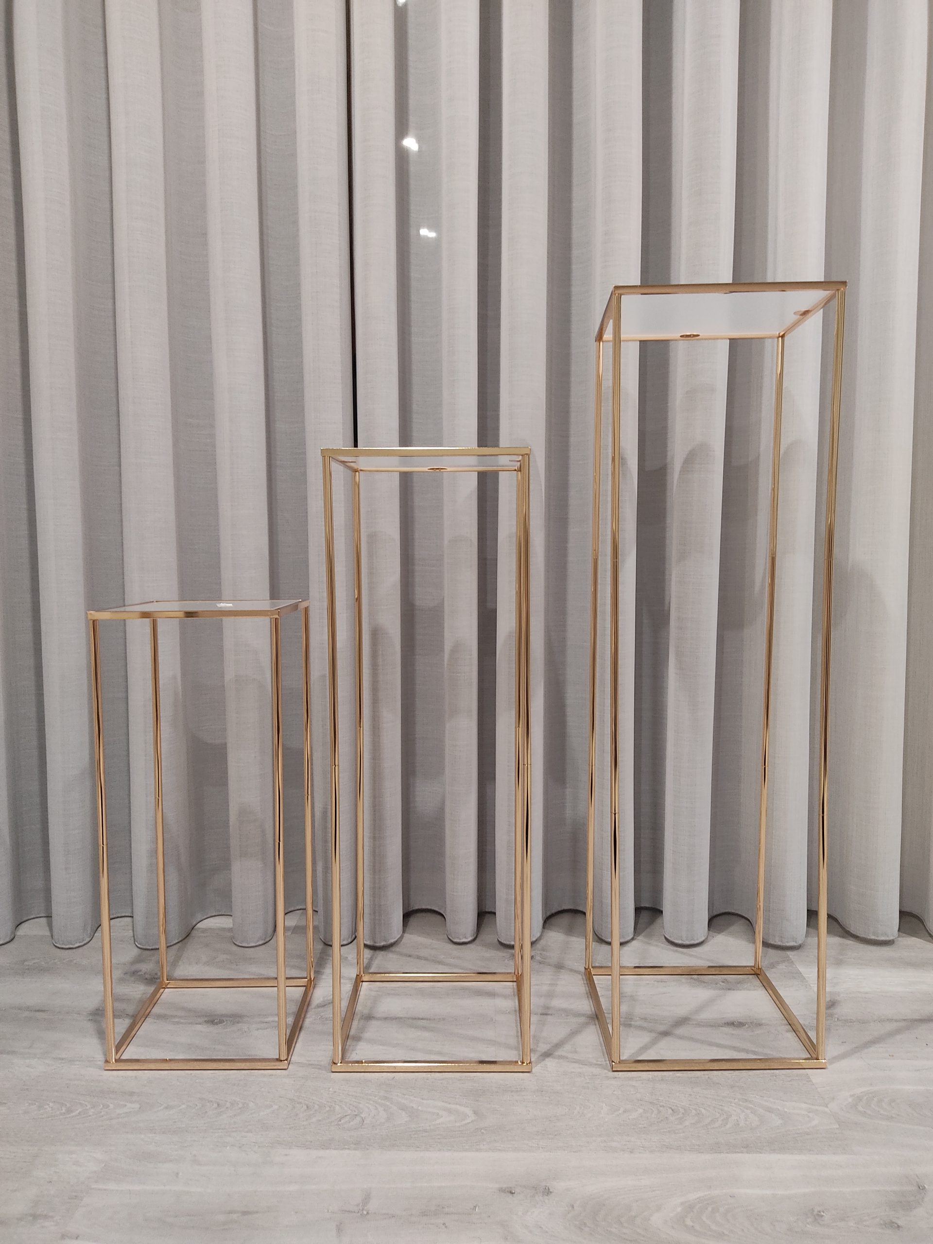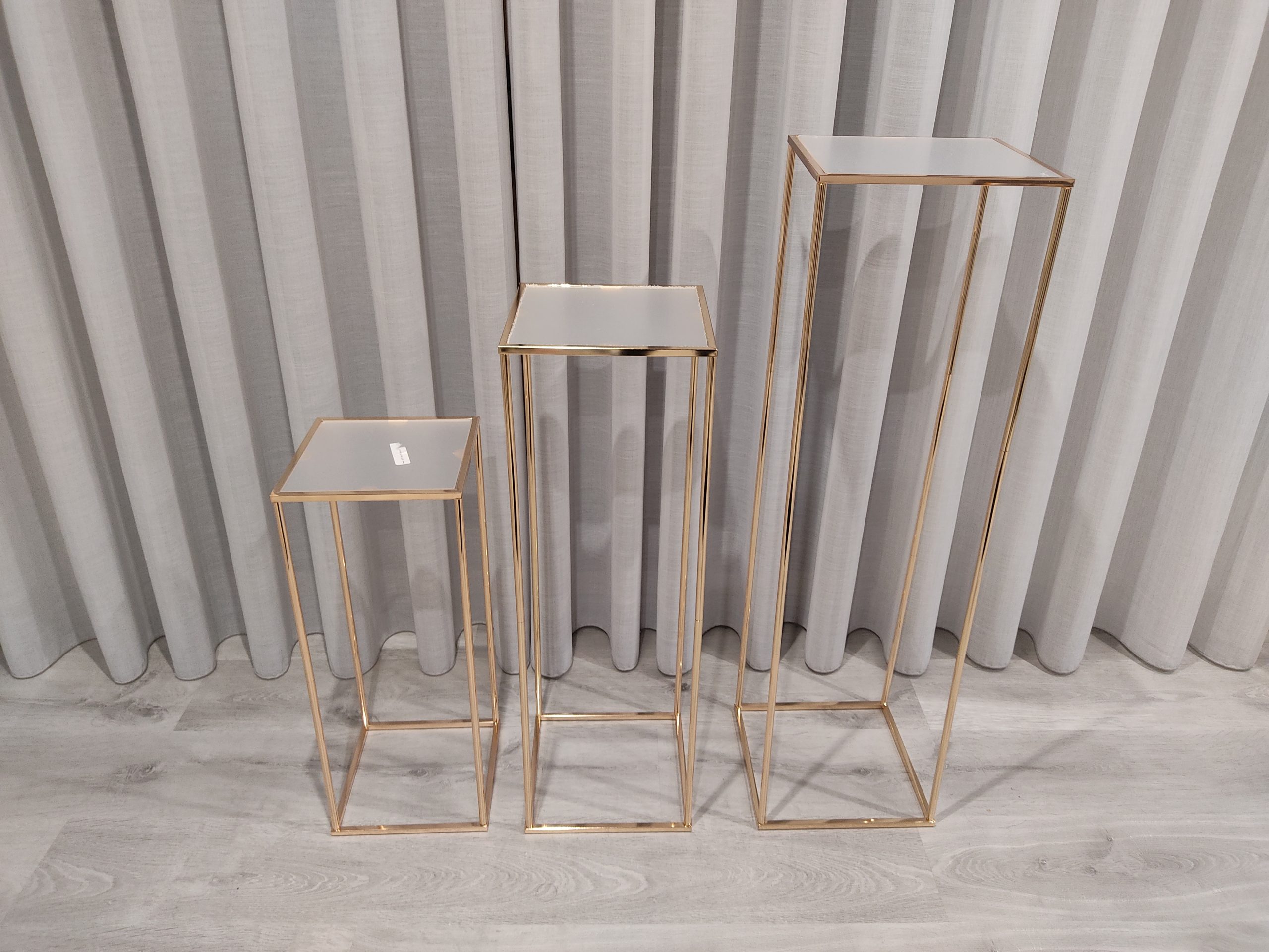 Aluguer de conjunto de 3 mesas de apoio gold (60 cm, 80 cm e 100 cm)