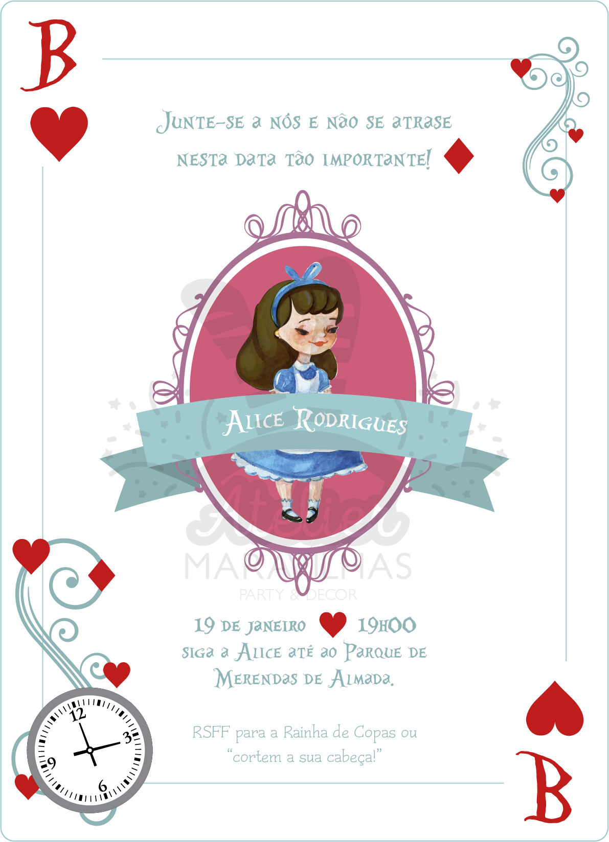 Convite digital – Pronto a imprimir – Alice no País das Maravilhas